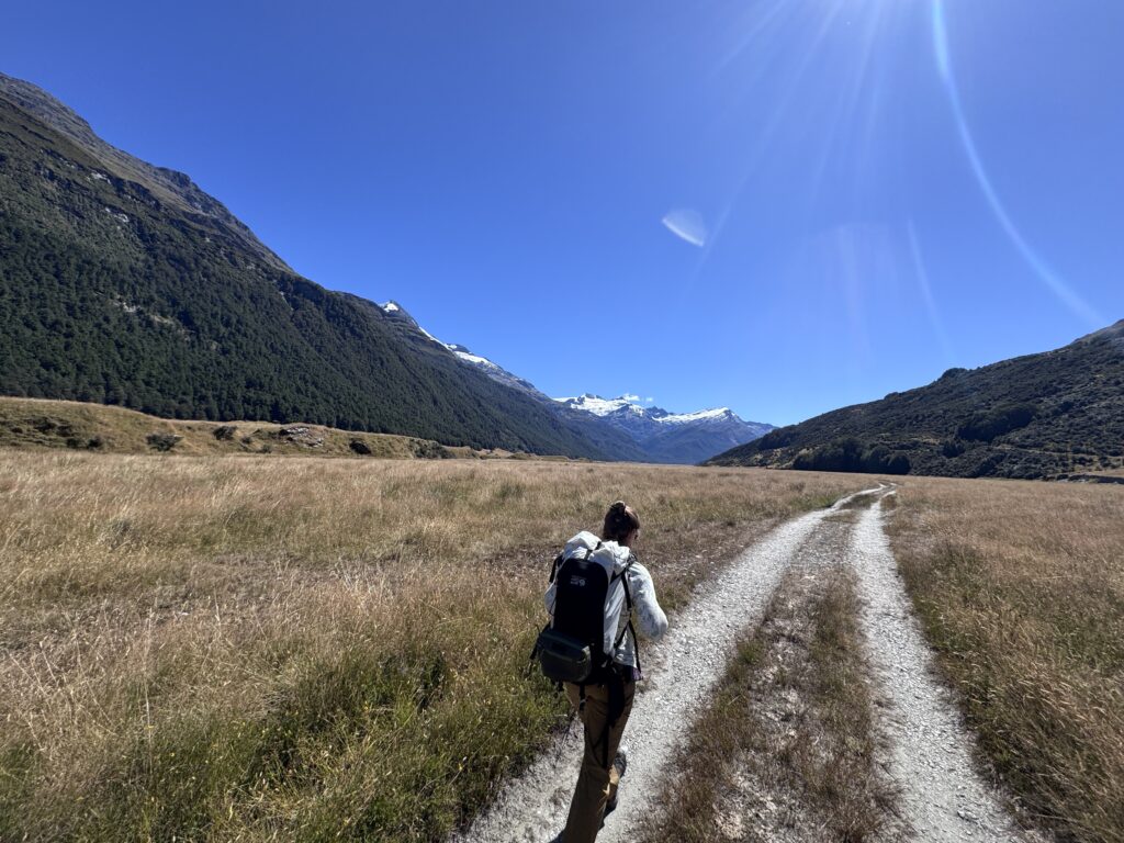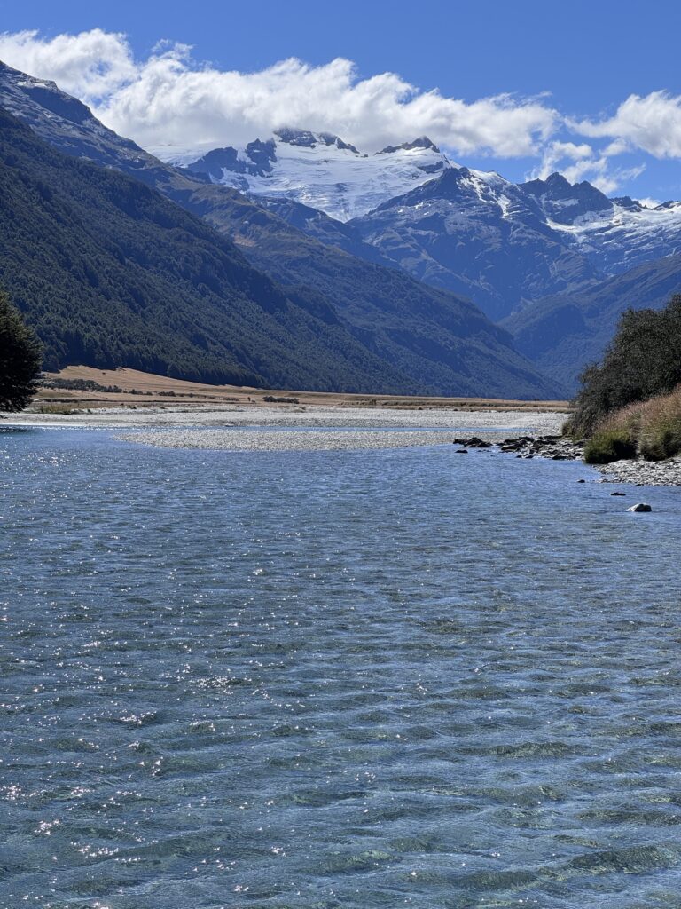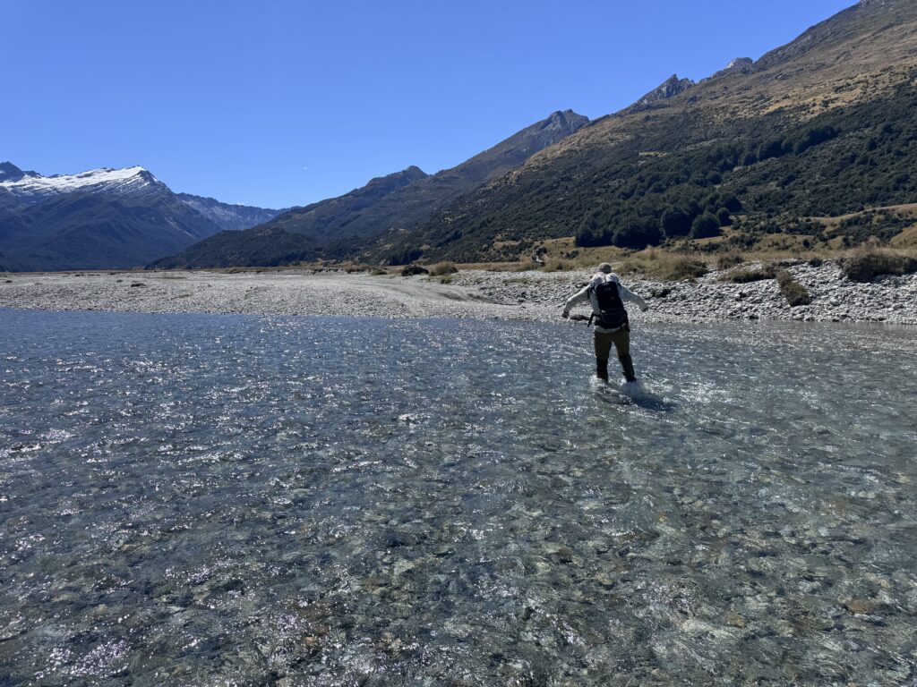 The plan I had come up with for the day was to hike up the Rees River and float back down. It was challenging for us to find a suitable place to float, but this was a fairly popular and straightforward trip. We left sealed roads for the first time and headed into the unknown. It was narrow, not too rough, and had a couple of shallow streams that needed to be crossed. Nothing too spicy. Made me wonder if I had been too conservative with my driving and should have made the trip to Rob Roy Glacier area in Wanaka.